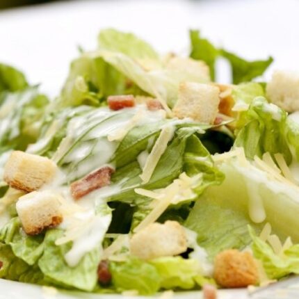 Ledus salāti ar cieto sieru, grauzdiņiem un pikanto ar/bez ķiploku mērci. Sastāvs: salātlapas, cietais siers, grauzdiņi, pikantā ķiploku mērce. 14.00