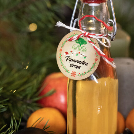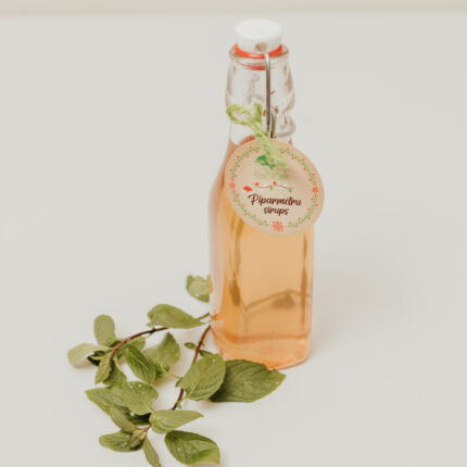 Piparmētru sīrups. 250ml Sastāvs: piparmētras, cukurs.